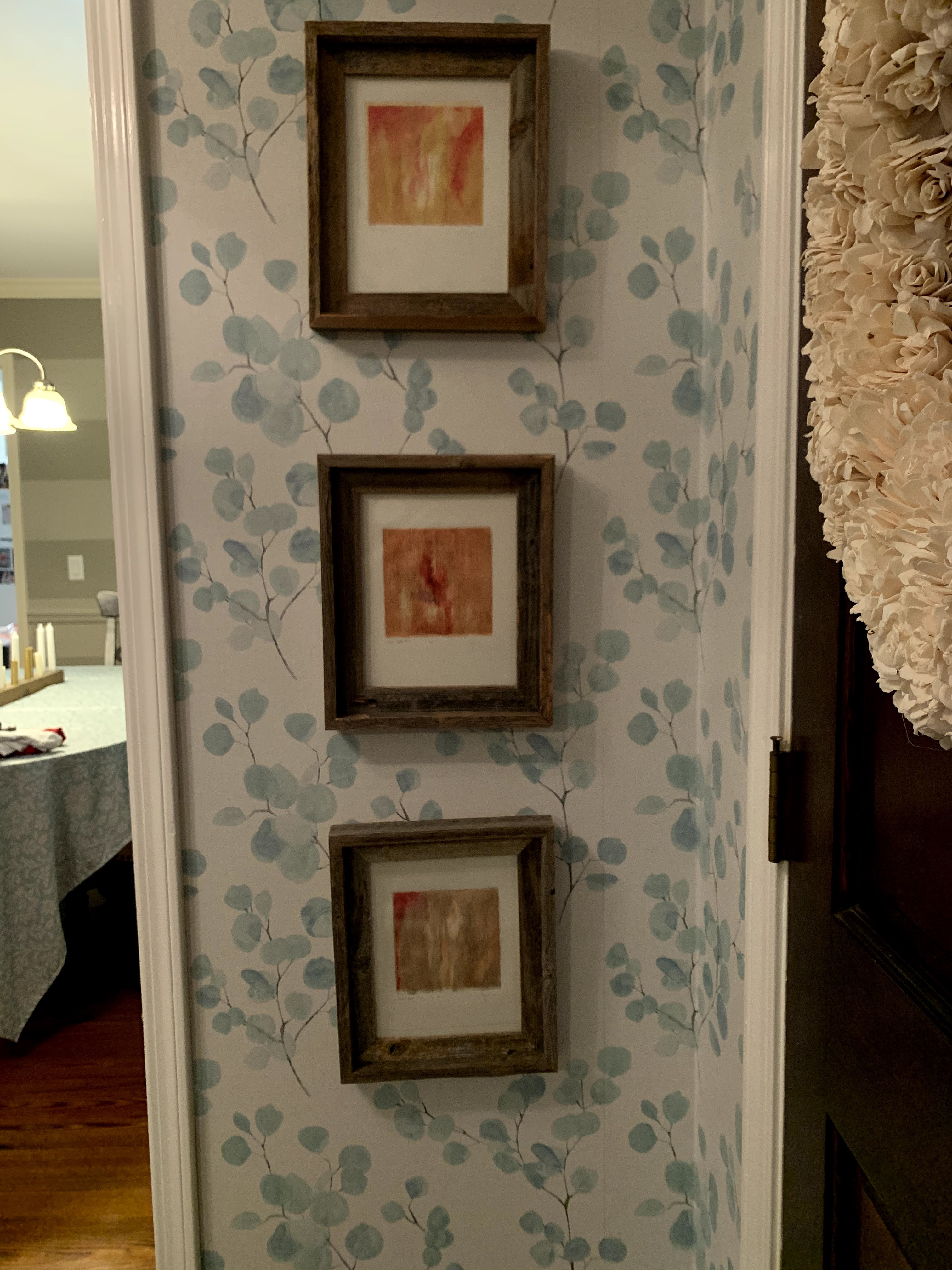 I found a beautiful print on Amazon but when it arrived, it was too glossy. It looked how youād think $20/roll peel and stick wallpaper from Amazon would look. It was pretty but much better suited to a small space (the back of a bookshelf or drawer fronts) than to an entire room. I saved one roll to use in our guest room as well decor.