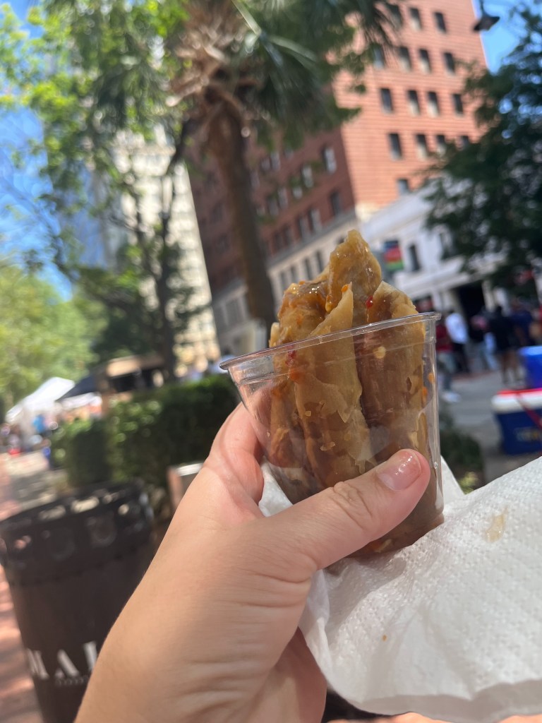 Swim lessons for the boys to kick off the day! They’re 4, 6, and 7 and are comfortable with water but can’t actually swim (that one’s on me) so I finally signed them up. We drove out to the Y in Lake Carolina which felt like a hike, but it was worth it to see them have so much fun. We finished our 30-minute lesson and made the 30-minute drive back home. John had a birthday party so we decided to split up. Bill took John to his friend’s party and Conor and I headed to the Soda City Market. If y’all are Columbia locals and are not spending at least one Saturday a month at Soda City, I don’t know what you’re doing with your weekends. This is literally one of my favorite things to do in Columbia. I LOVE it! And you should too. The food, coffee, artisans, music, and people watching make it one of the best tickets in town, hands down. Conor got a snow cone from Boeshreen (a go-to Washington boys’ favorite) but we bypassed the lines at the Donut Guy and Arepa truck and checked out some art instead. I did get some lumpia from The Burnt Toast Café food truck which always makes my heart and belly happy. Since were with my sister-in-law (who was visiting from Charleston) and her brother we made a few detours and explored the Arcade Mall on Main Street and the Columbia Museum of Art.